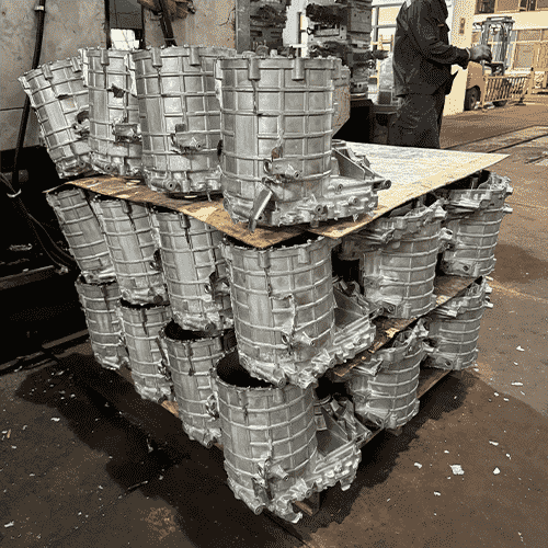 The aluminium alloy is melted at a temperature of more than 700 degrees Celsius and the melted materialis then poured into the die casting mould.